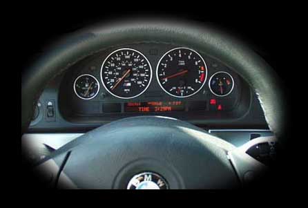 standard BMW mileage gauge is replaced by an oil temperature gauge.